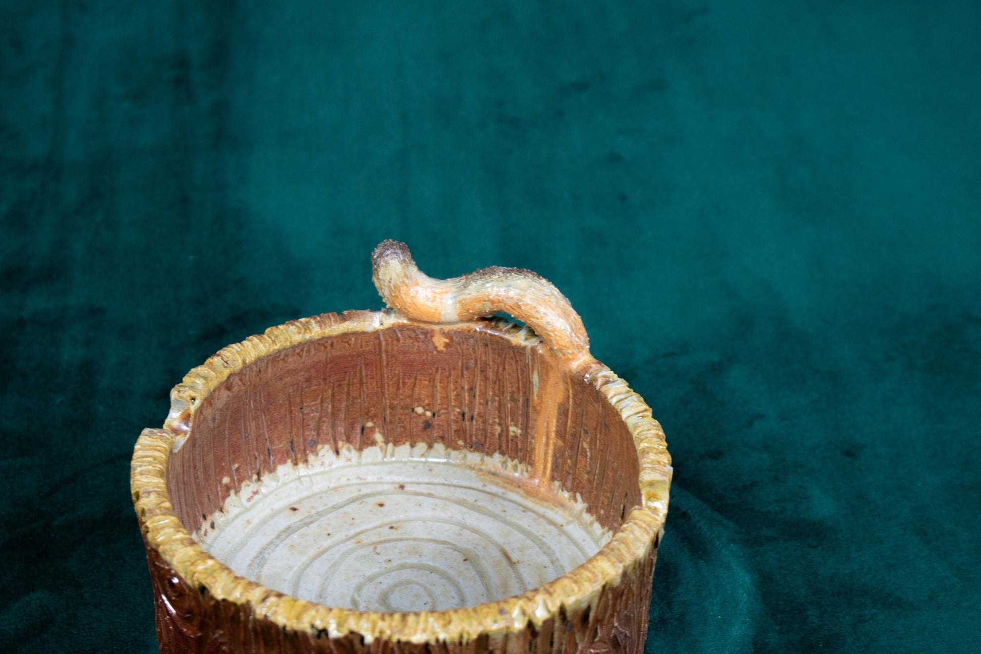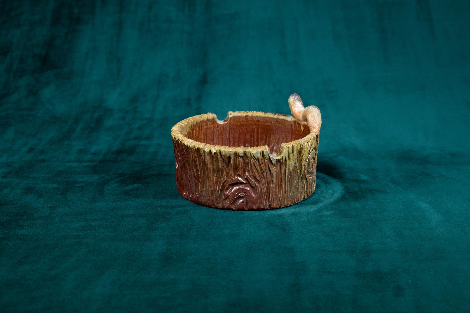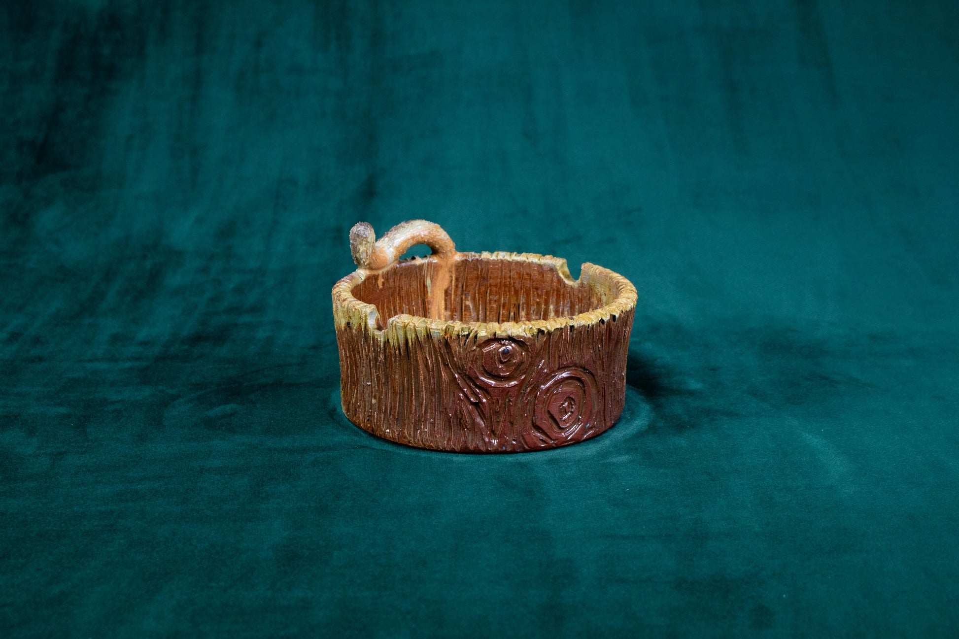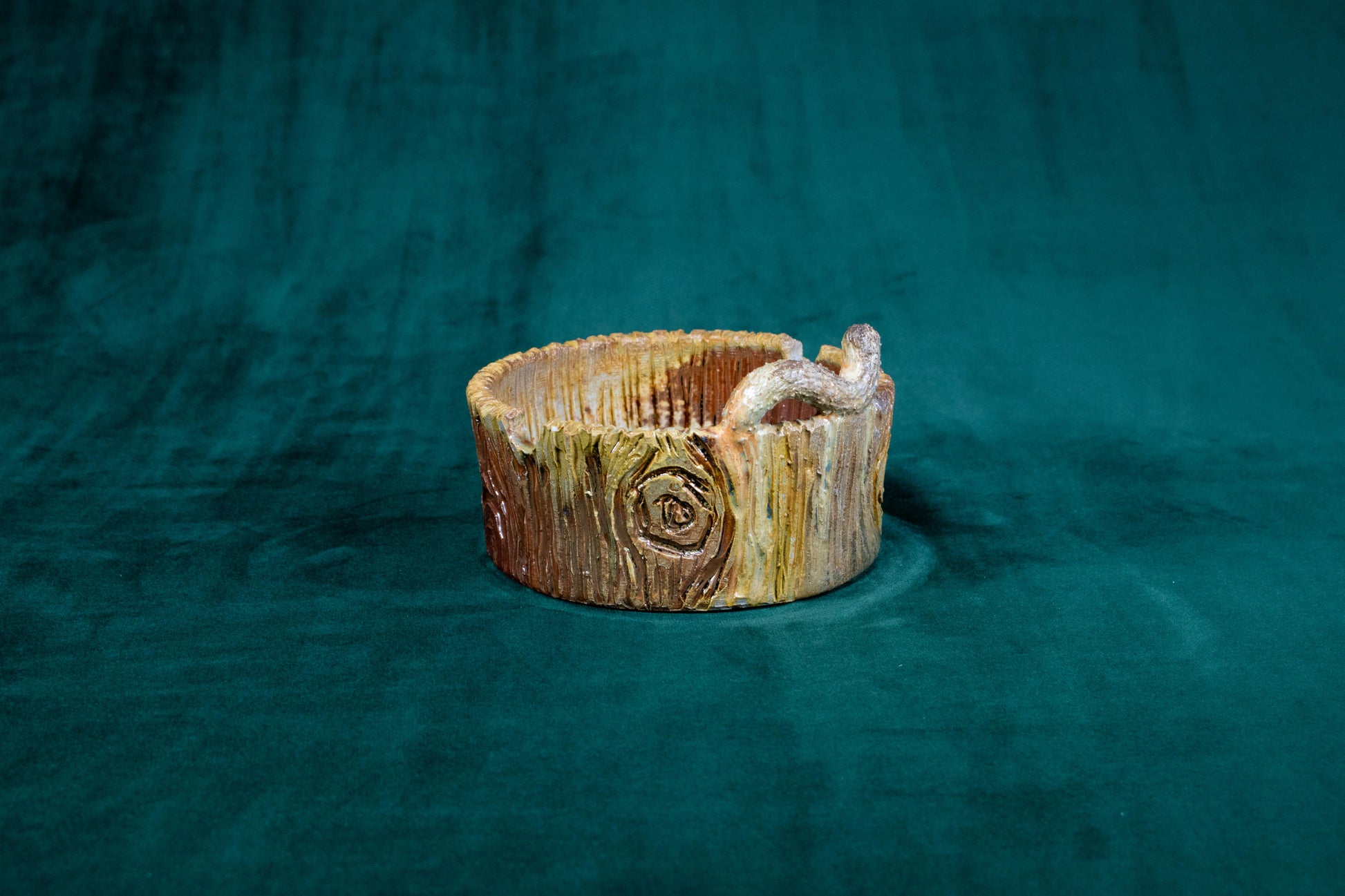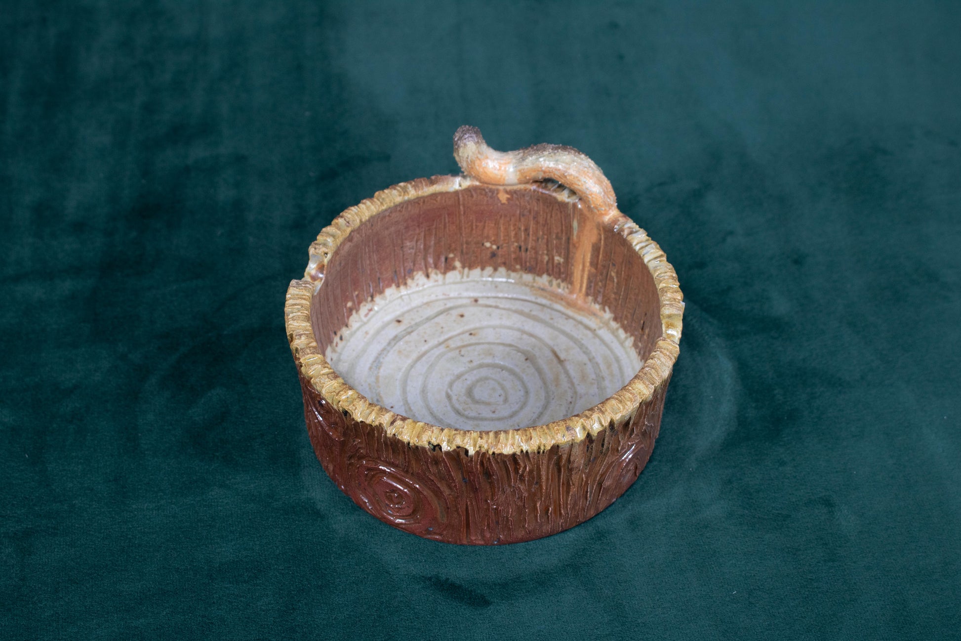 This tray was thrown on a wheel, trimmed, carved, sculpted, fired in a kiln, hand glazed for gloss, and fired in a wood fire kiln for 45 hours to 2300°F for final product.