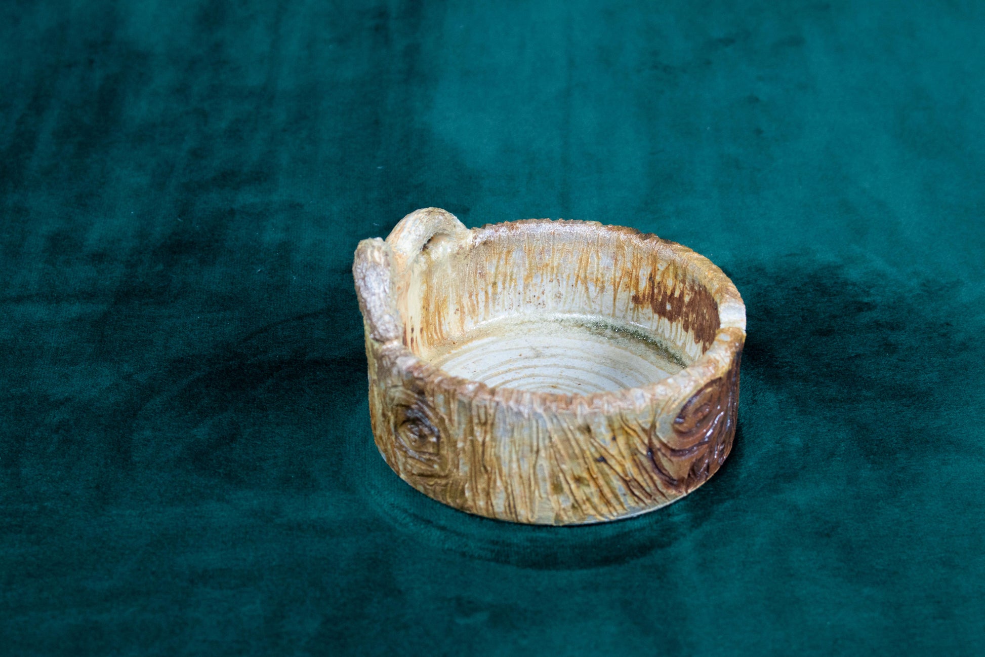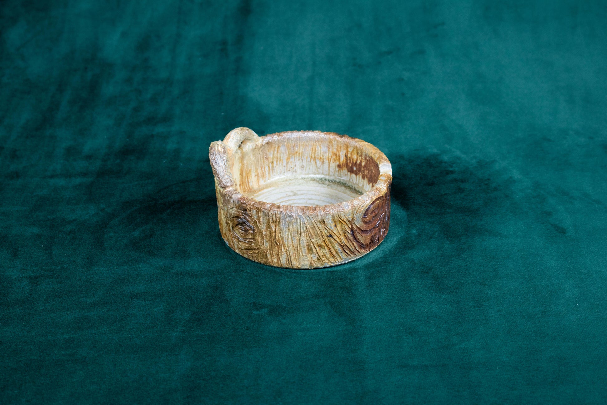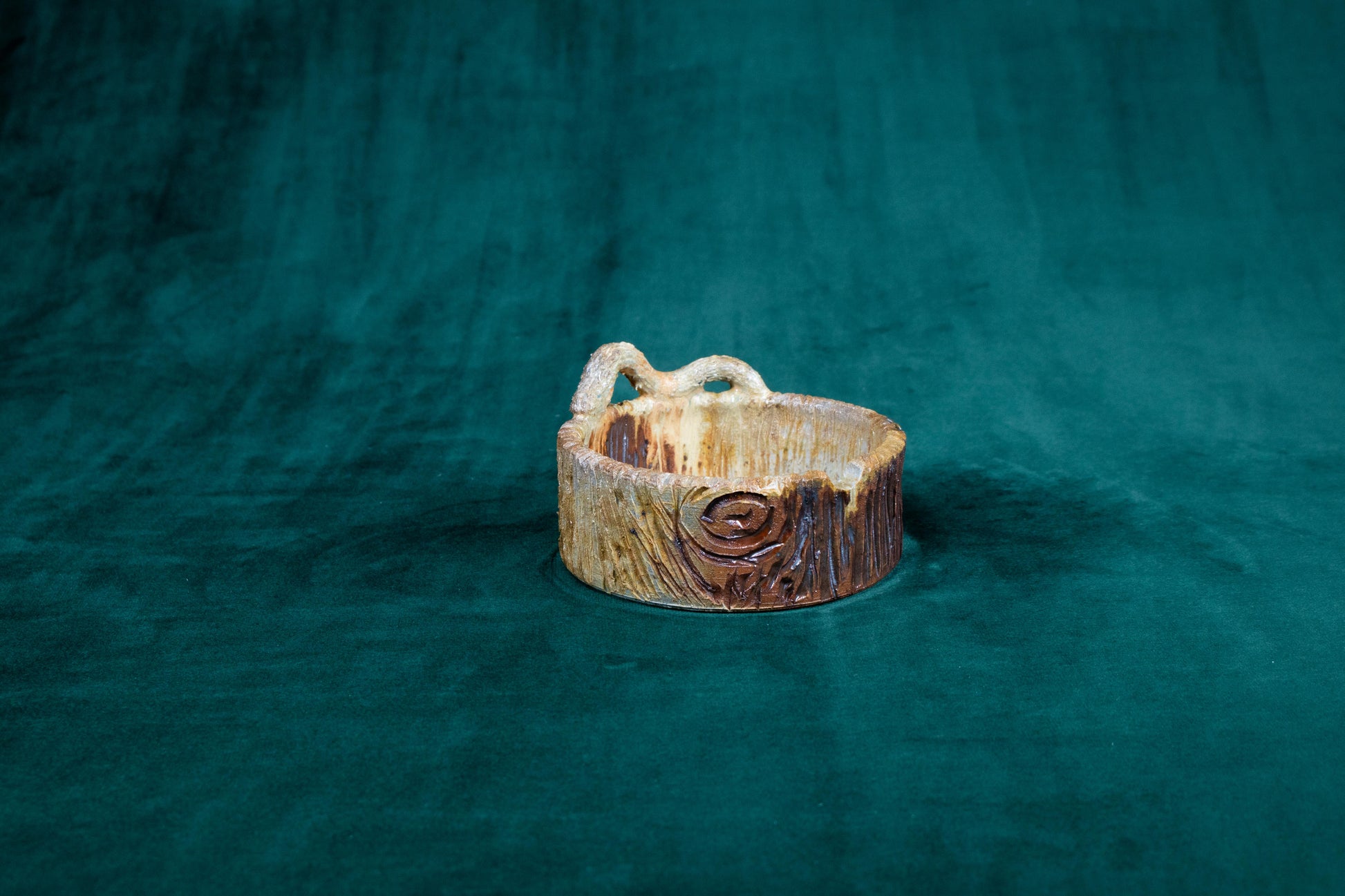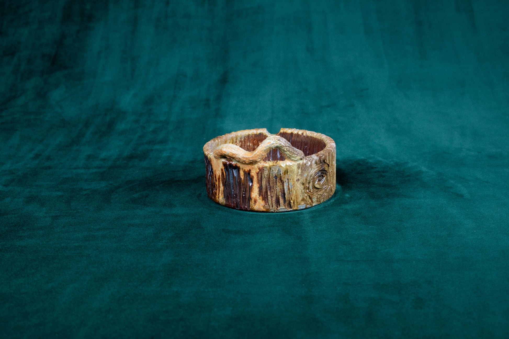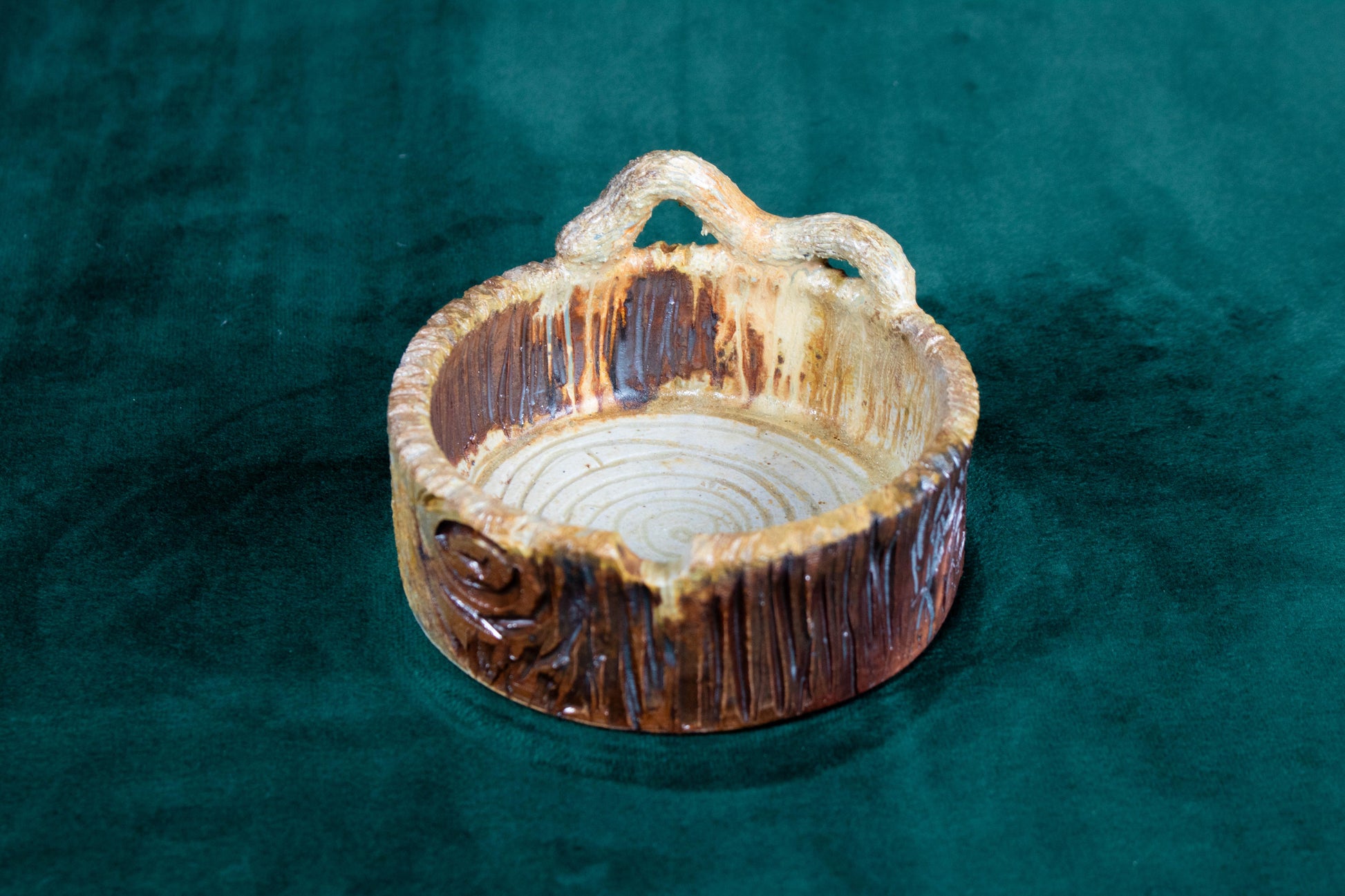 This tray was thrown on a wheel, trimmed, carved, sculpted, fired in a kiln, hand glazed for gloss, and fired in a wood fire kiln for 45 hours to 2300°F for final product.
