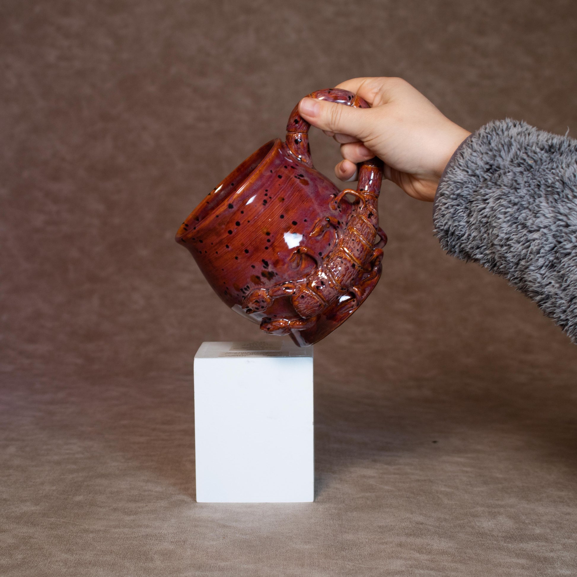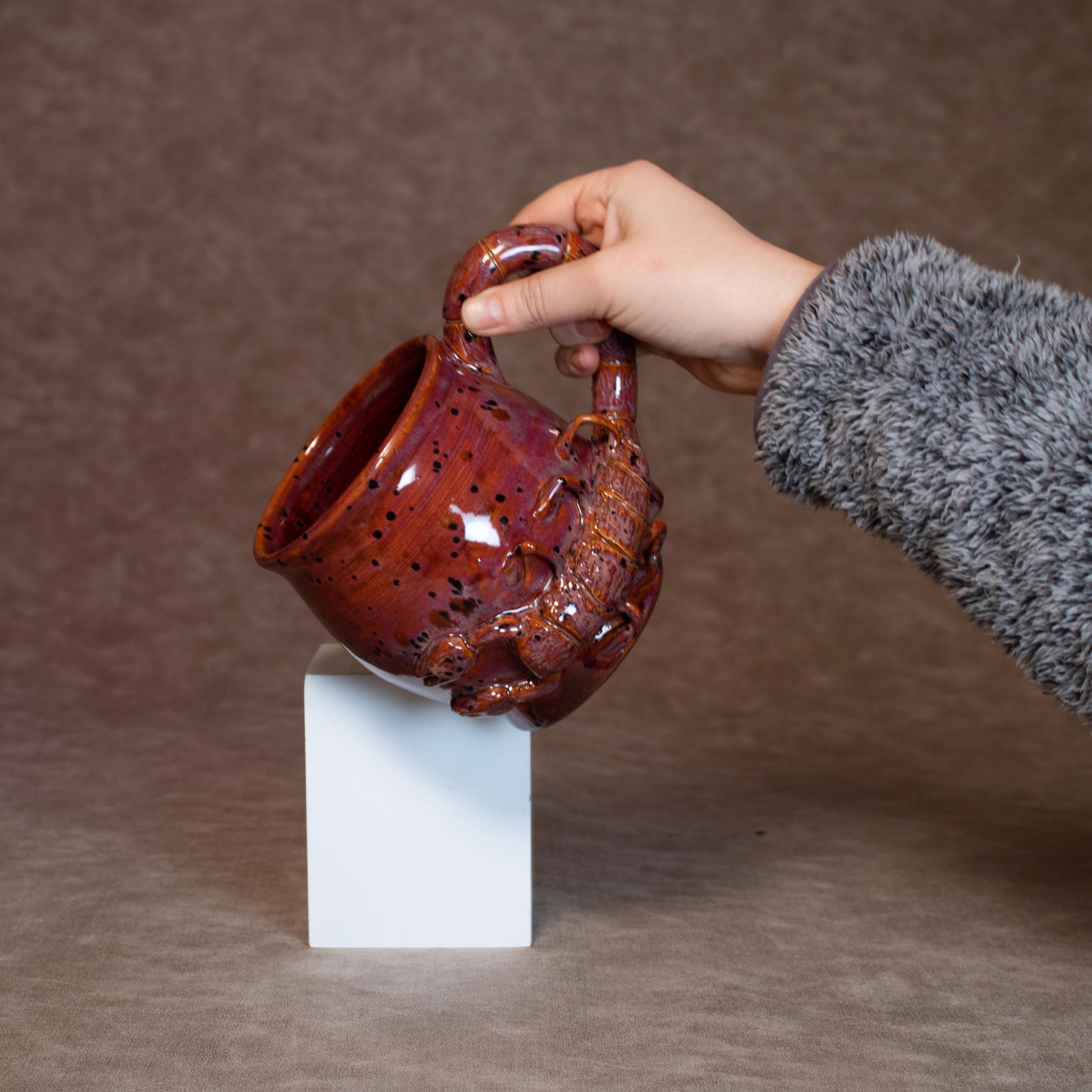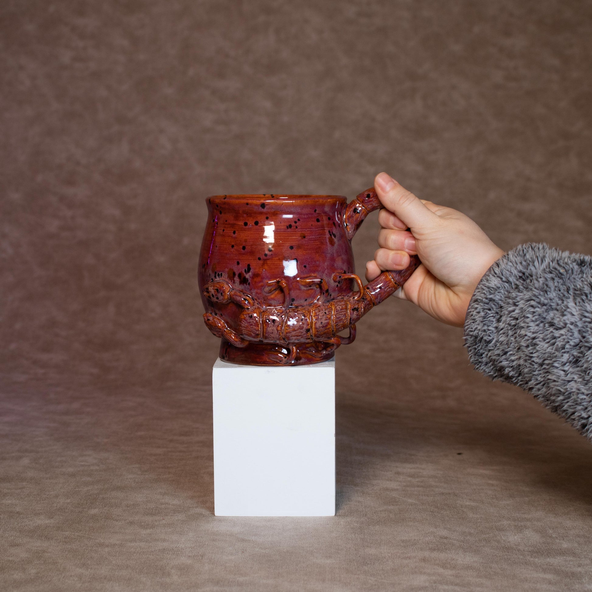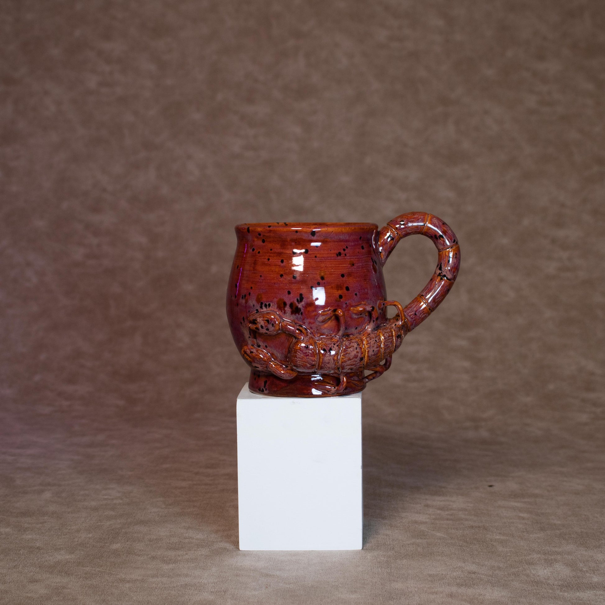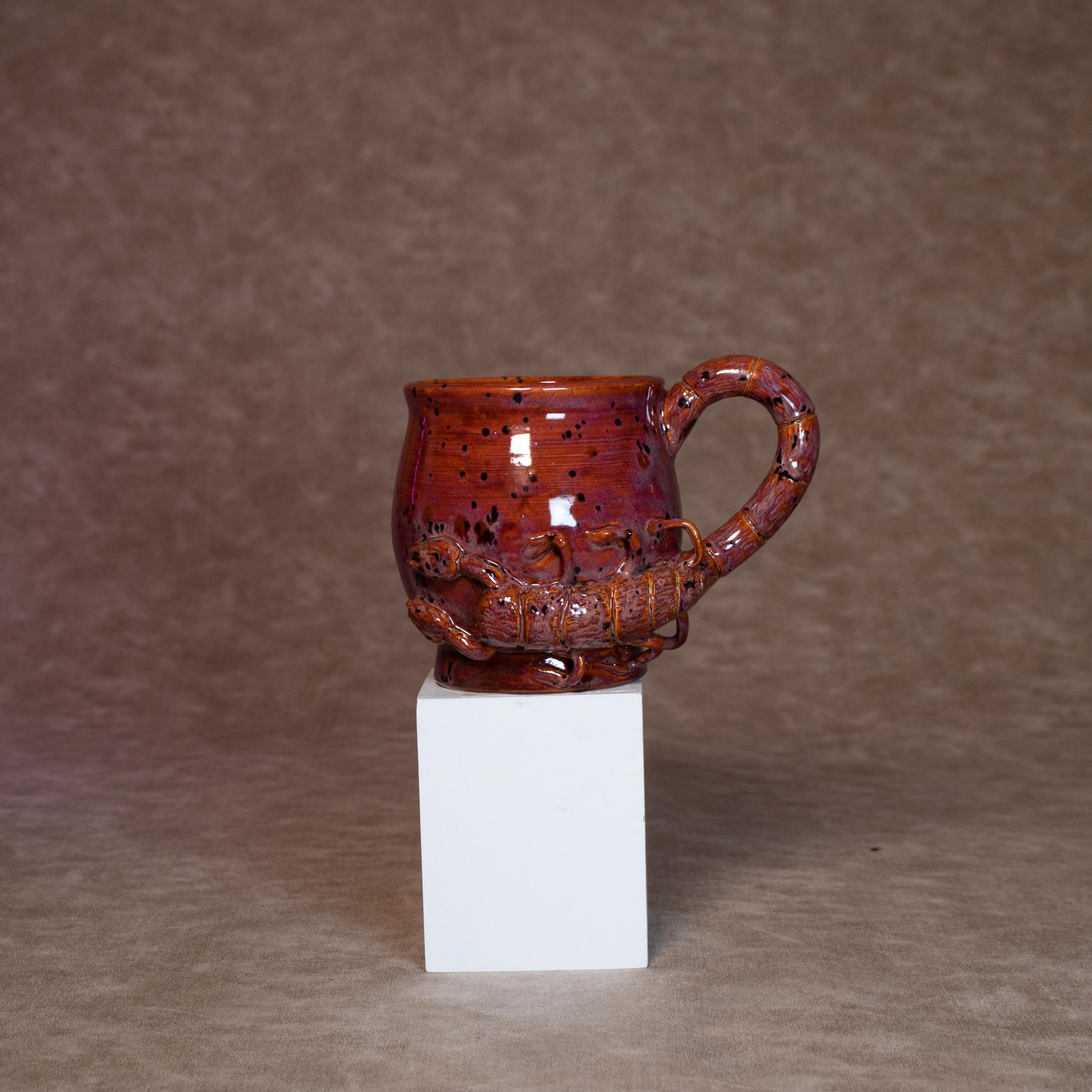 A mug made for the mysterious, the intuitive, the passionate. This hand-made ceramic mug embodies the Mars ruled Scorpio spirit with a scorpion handle protecting a fiery crystal-popping cauldron mug.